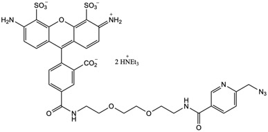 The Andy Fluor™ 488 picolyl azide is reactive with terminal alkyne via a copper-catalyzed click reaction at a much lower copper (I) concentration without sacrificing reaction efficiency, which protects against undesired copper side reactions with proteins (e.g., GFP, RPE), nucleic acids (e.g., RNA, oligos), and even small molecules (e.g., phalloidin).