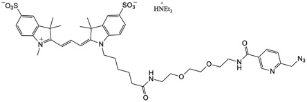 The Cy3 picolyl azide is reactive with terminal alkyne via a copper-catalyzed click reaction at a much lower copper (I) concentration without sacrificing reaction efficiency, which protects against undesired copper side reactions with proteins (e.g., GFP, RPE), nucleic acids (e.g., RNA, oligos), and even small molecules (e.g., phalloidin).