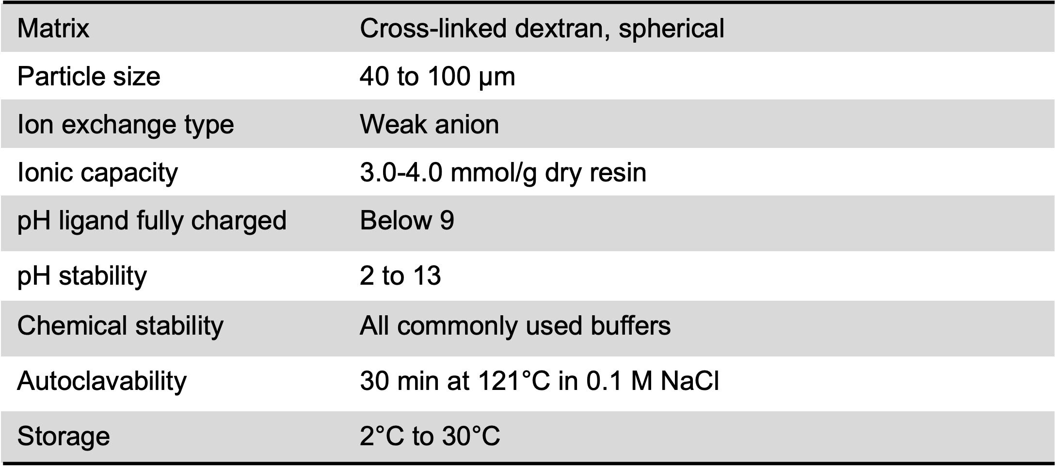 Table 1. DEAE Sephadex A-25 characteristics