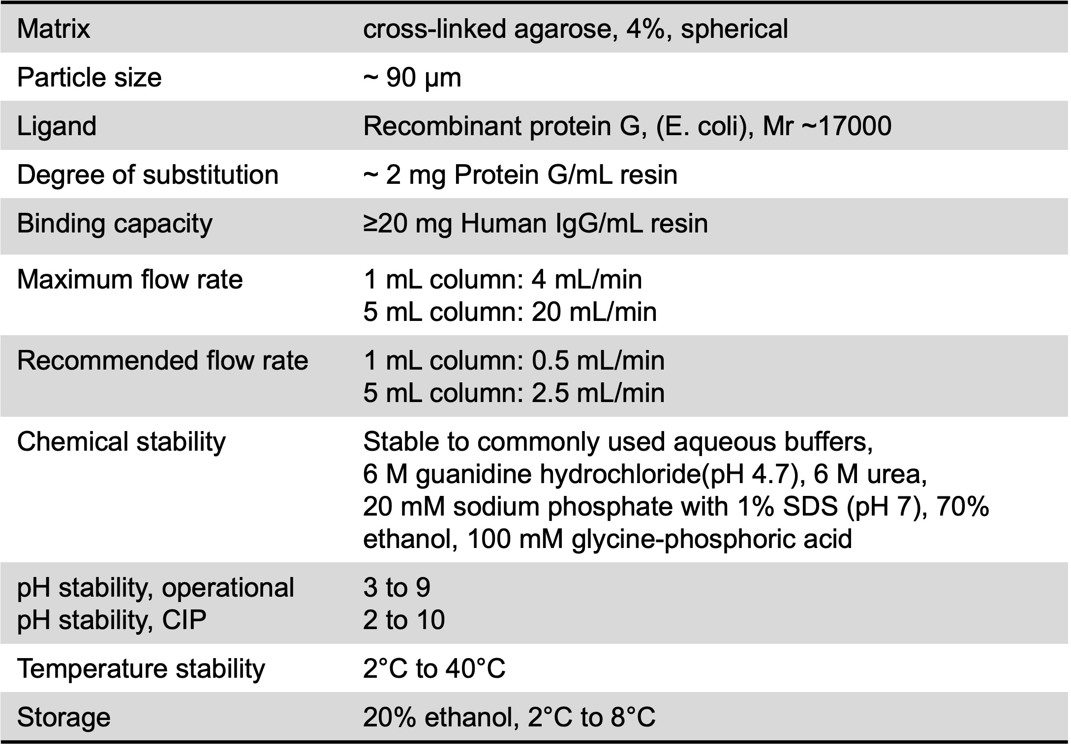 Table 2. HiTrap rProtein G FF characteristics